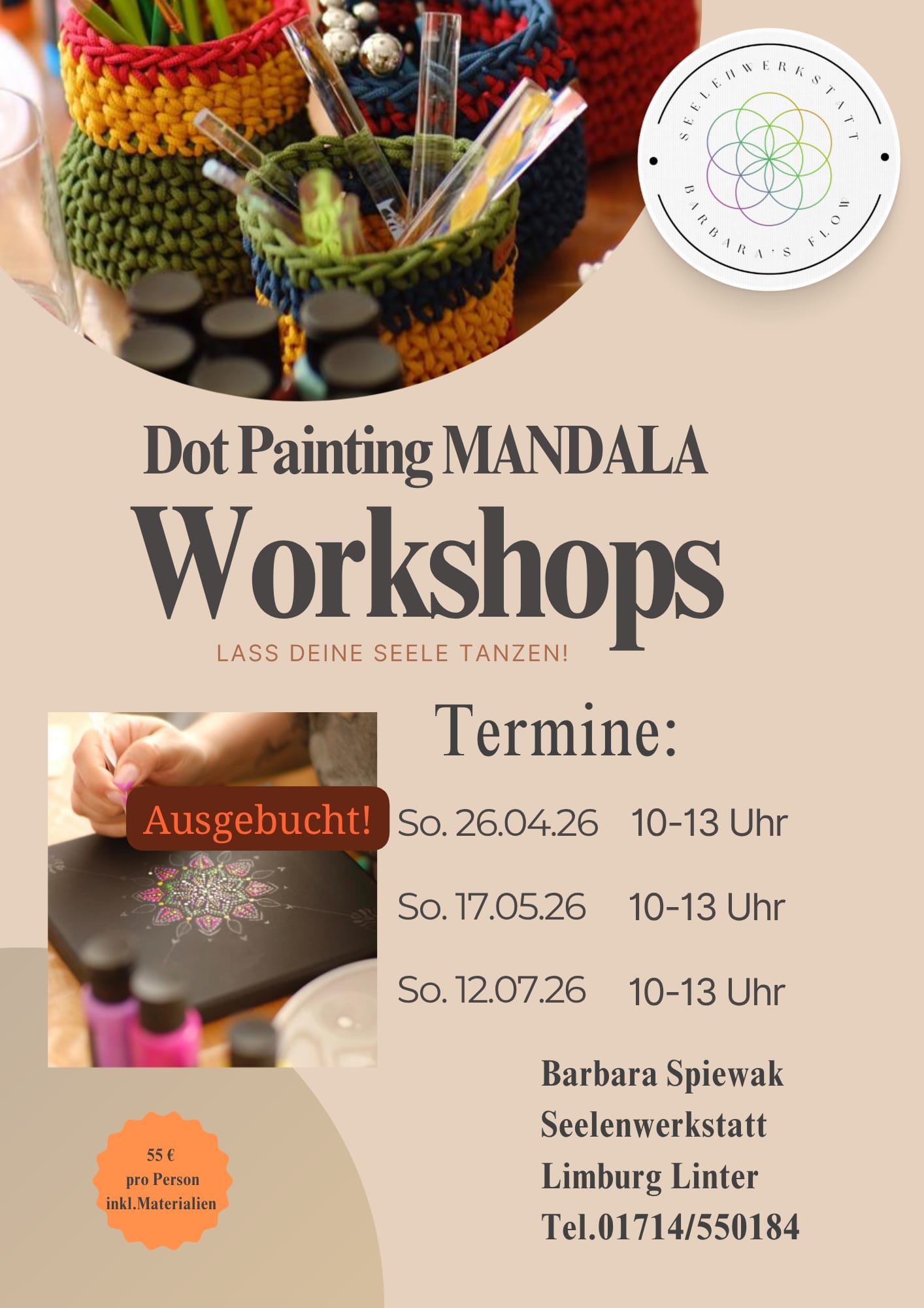 Lass deine Seele tanzen! Dot Painting Mandala Workshop – ein kreativer Vormittag, um zur Ruhe zu kommen und durch Farben und Formen wieder in Verbindung mit dir selbst zu treten.